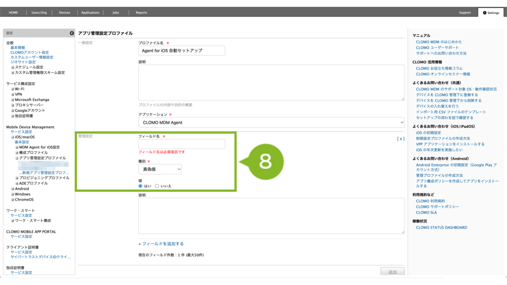 設定方法は MDM Agent for iOS 設定プロファイルをご確認ください。