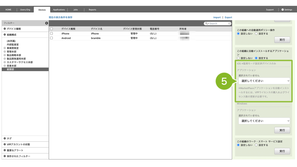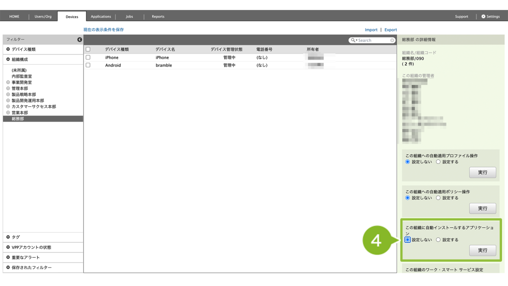 選択した組織に対してアプリを自動インストールしたい場合は、以下の方法で設定します。