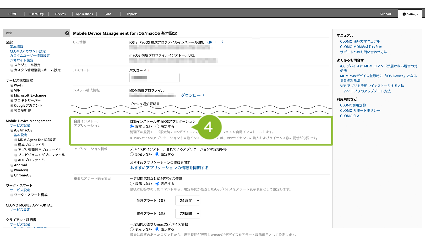4. 自動インストールアプリケーション欄にある「自動インストールする iOS アプリケーション」 の [設定する] をクリックします。