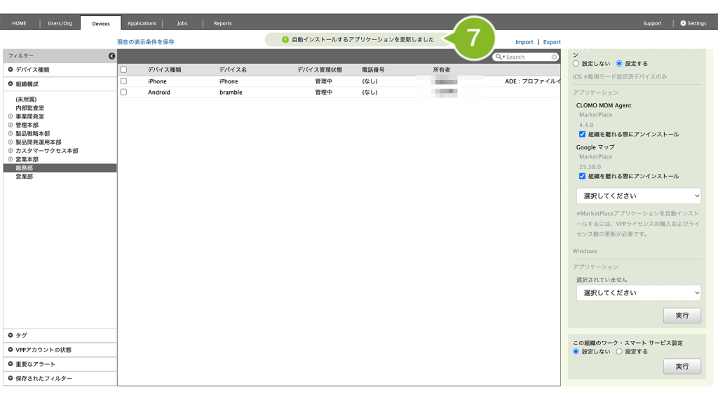 ※ 自動インストールとは、デバイスを CLOMO MDM 管理下に登録したタイミングや設定した組織に登録したタイミングで自動的に VPP アプリケーションがインストールされることを指します。