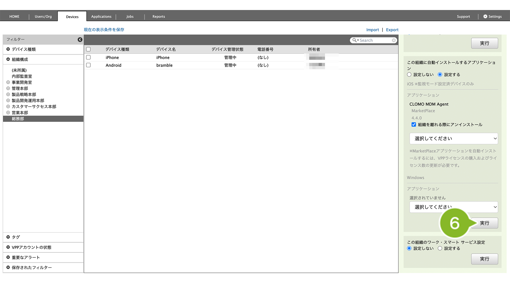 自動インストール設定をした場合、すでに管理下に登録済みのデバイスに対しては、保存や実行をしたタイミングでデバイスにインストールされますのでご注意ください。