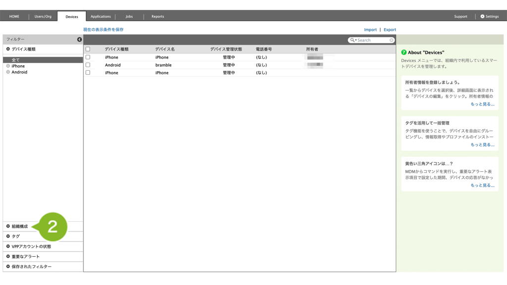 1. CLOMO PANEL にログイン後、[Devices]をクリックします。