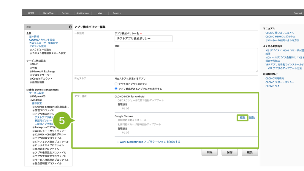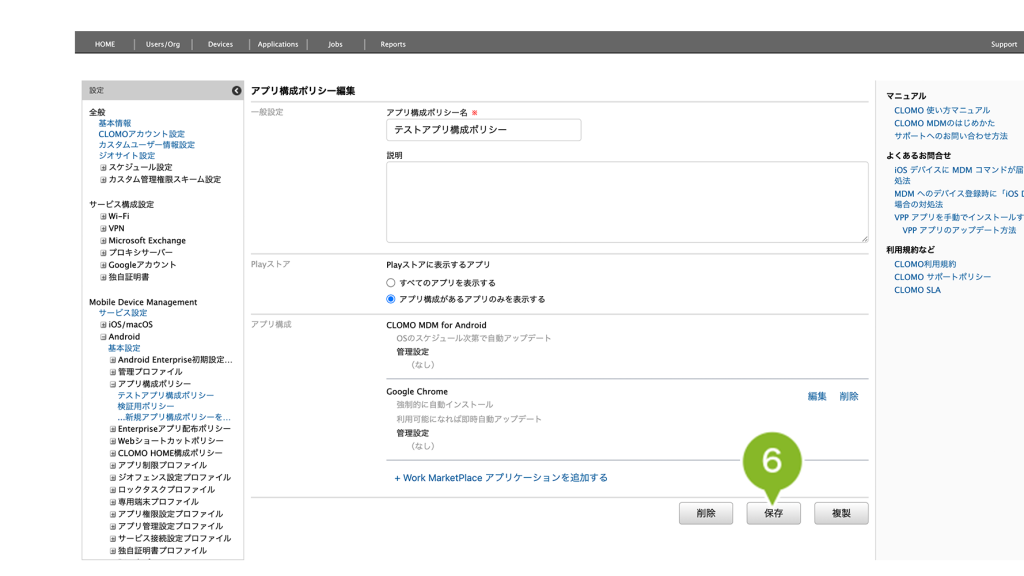 Android のアプリケーションをデバイスにインストールするには、必ず「アプリ構成ポリシー」が必要です。
