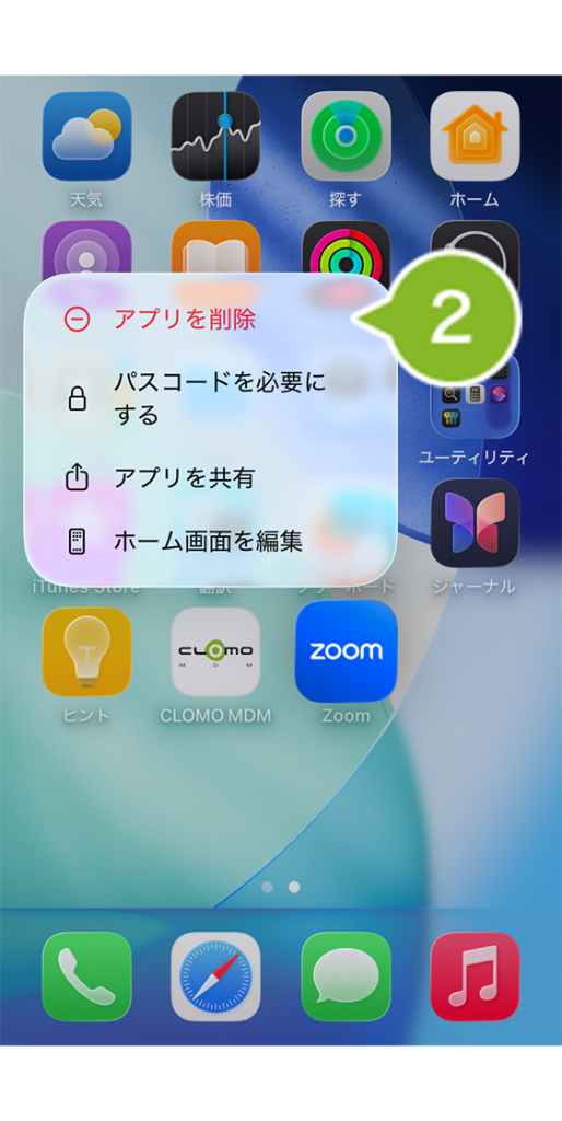 2.[アプリを削除]をタップします。