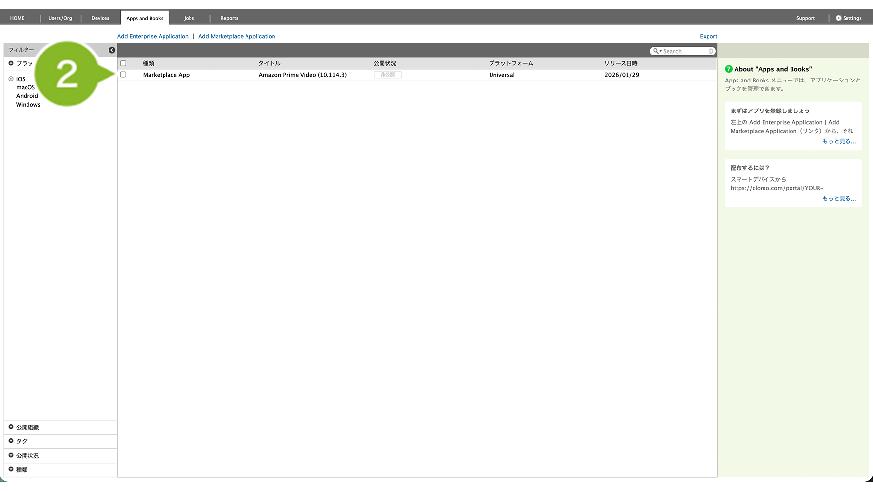 ※ MarketPlace アプリ、Enterprise アプリともに本ページをご参照ください。