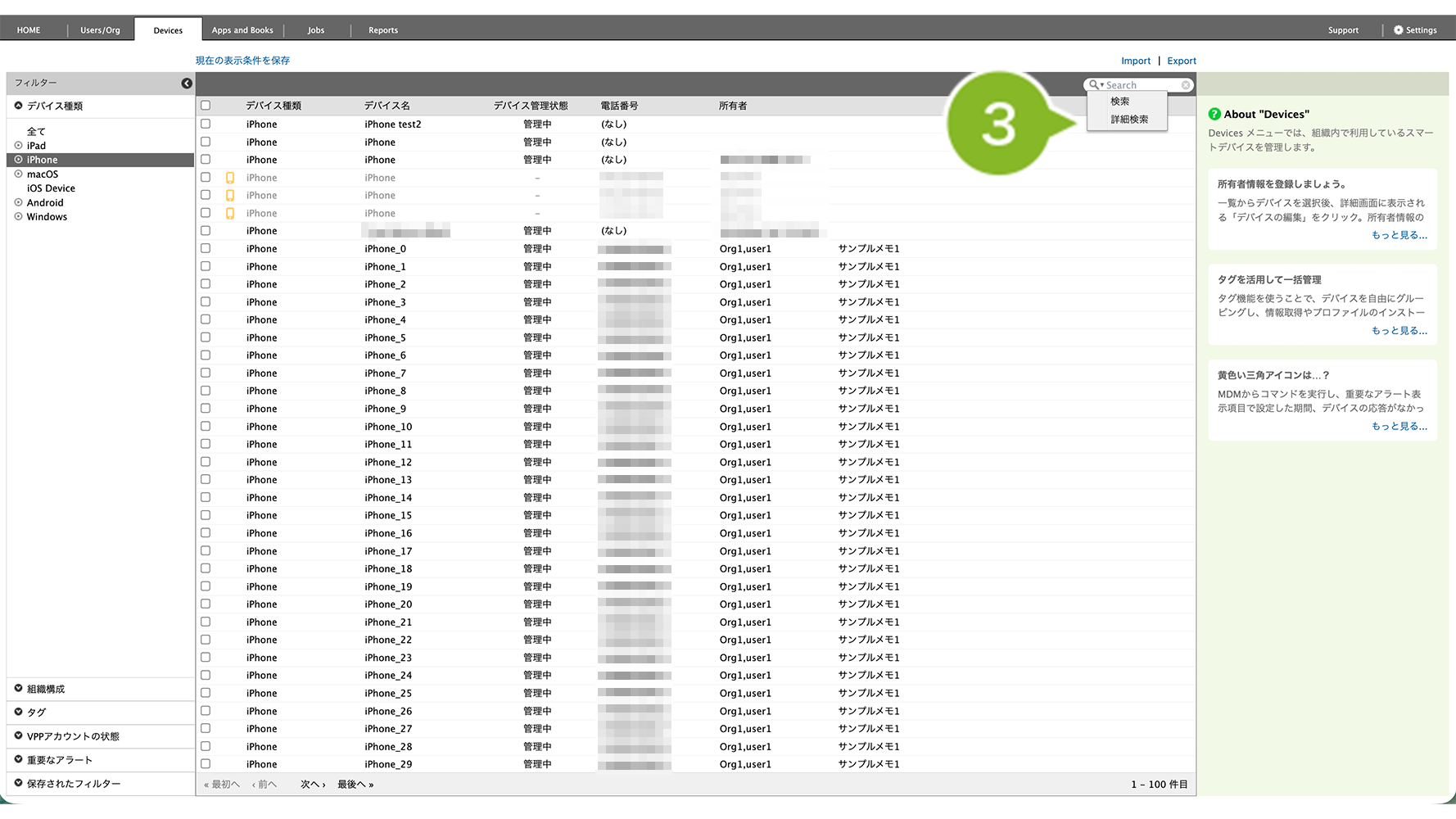 複数のデバイス(組織のデバイス・全デバイス)から