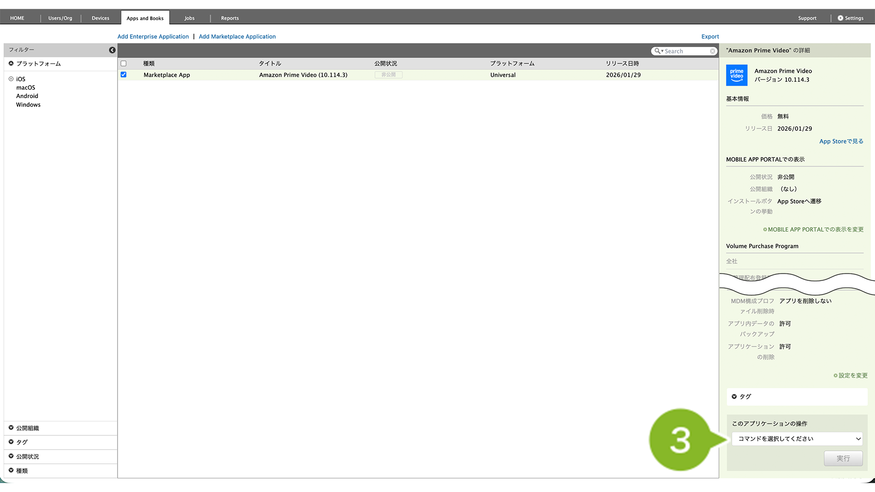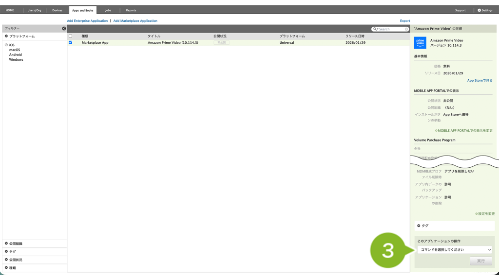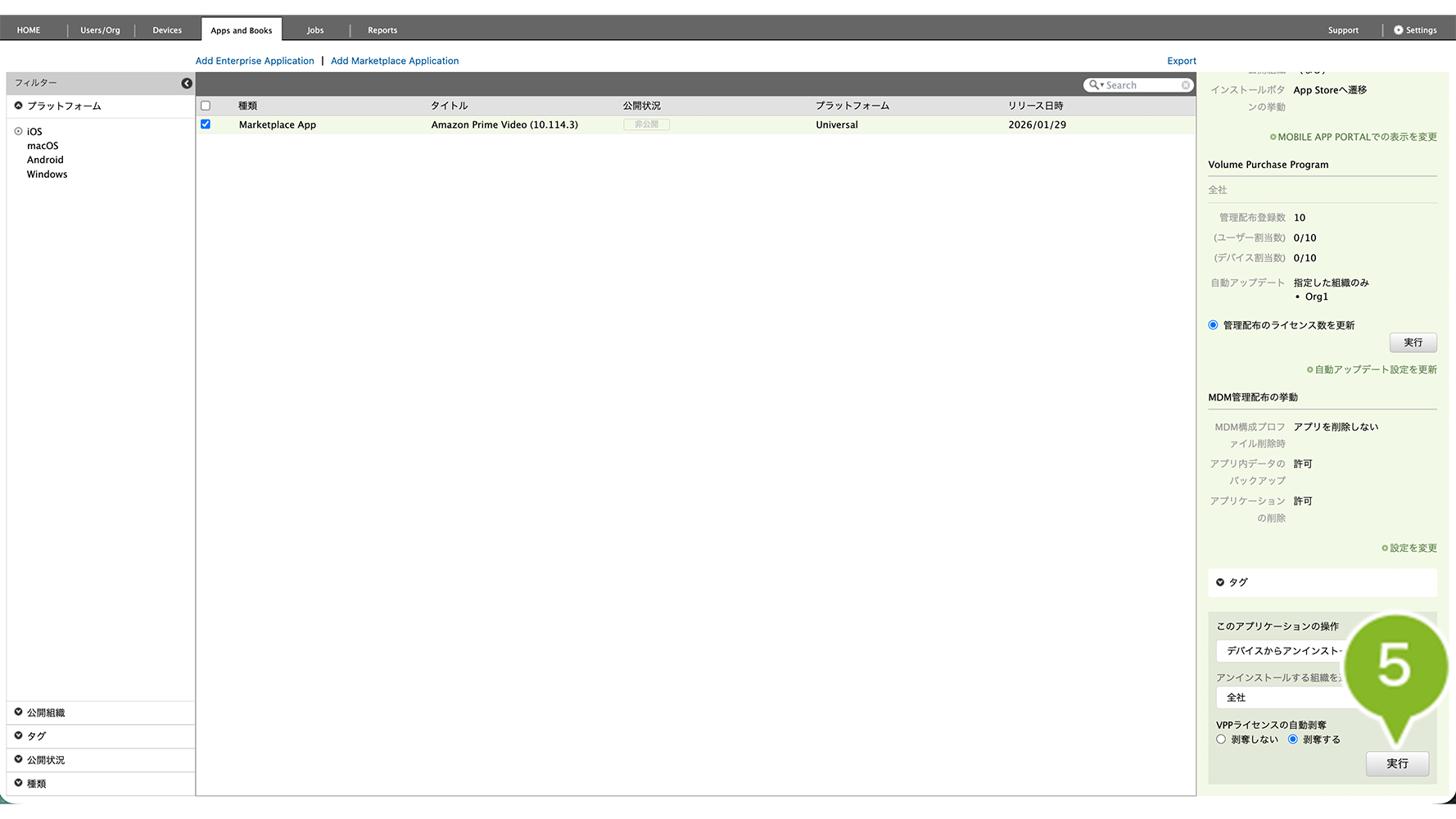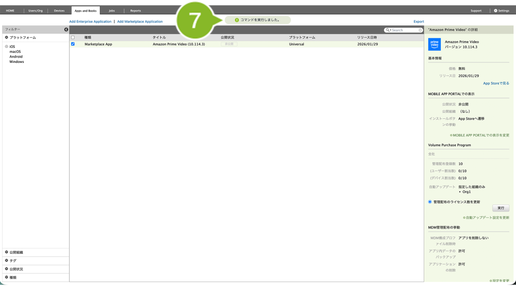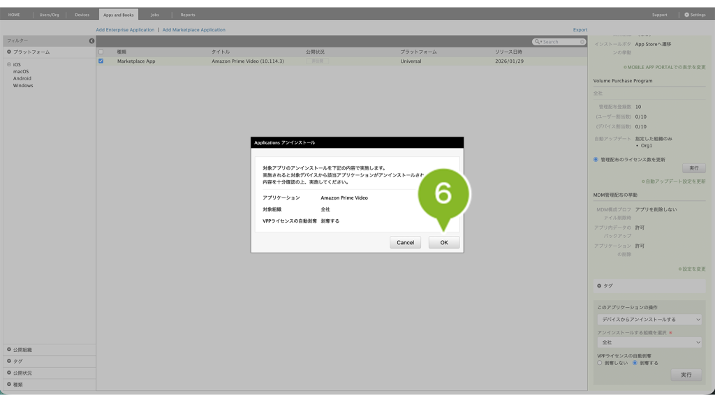 ※ MarketPlace アプリケーションのアンインストール時には、VPP ライセンスの剥奪も自動でおこなわれます。