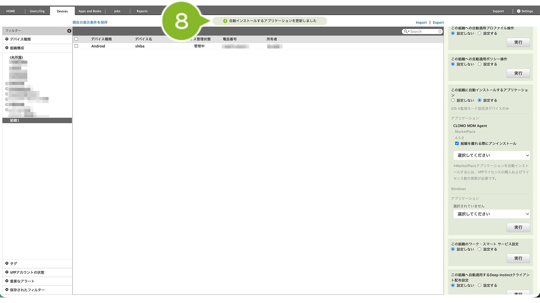 ※ 設定を保存すると、すでに組織に関連づけられている全デバイスに対して、設定内容が反映されますのでご注意ください。