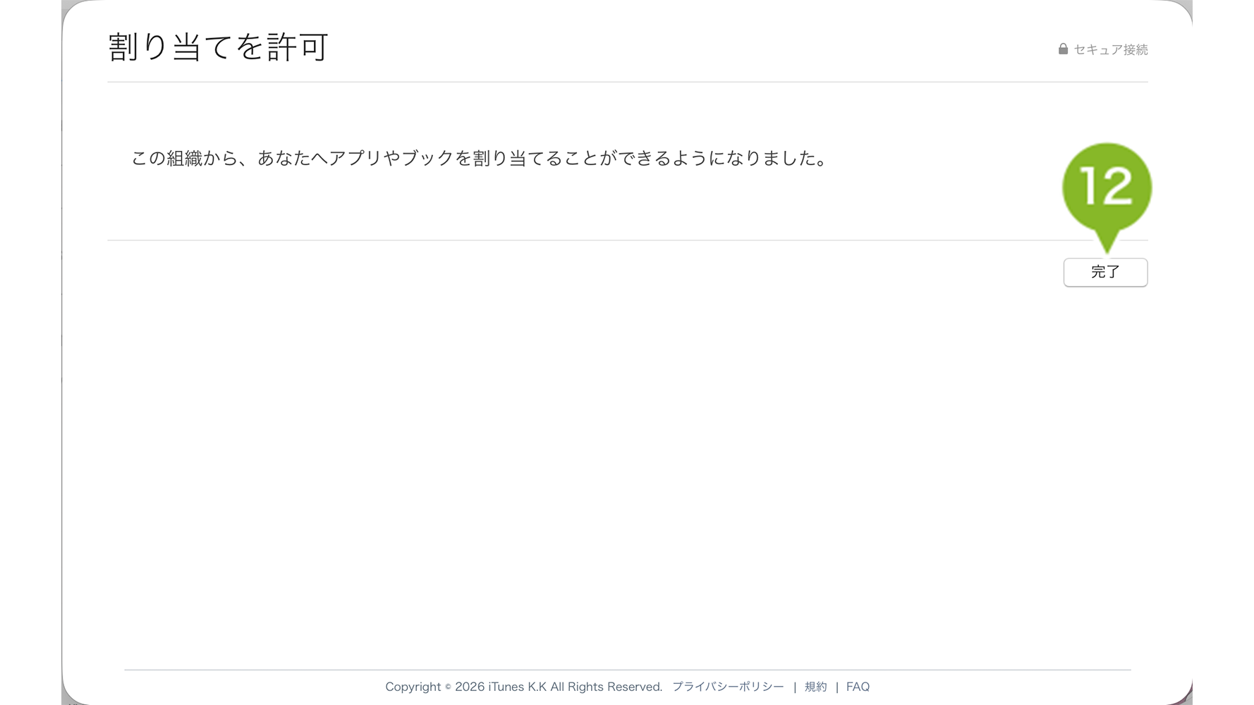 ※ 複数のデバイスで同一の Apple Account を利用された場合、VPP ライセンスの付与が正常におこなわれない場合があります。