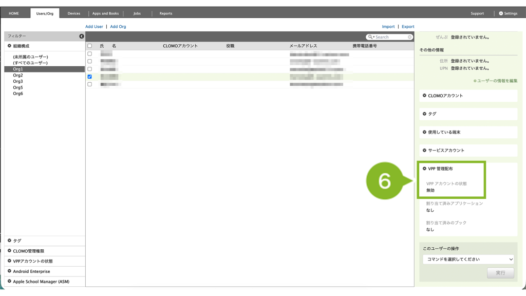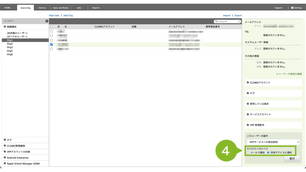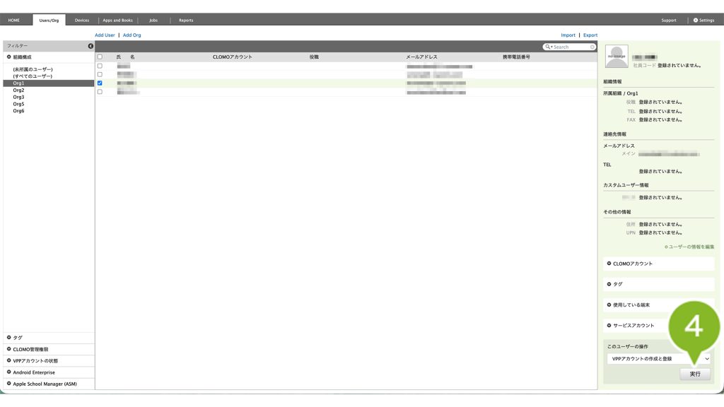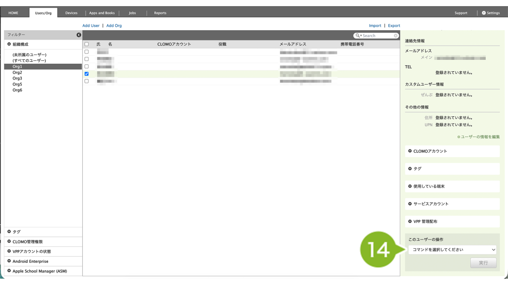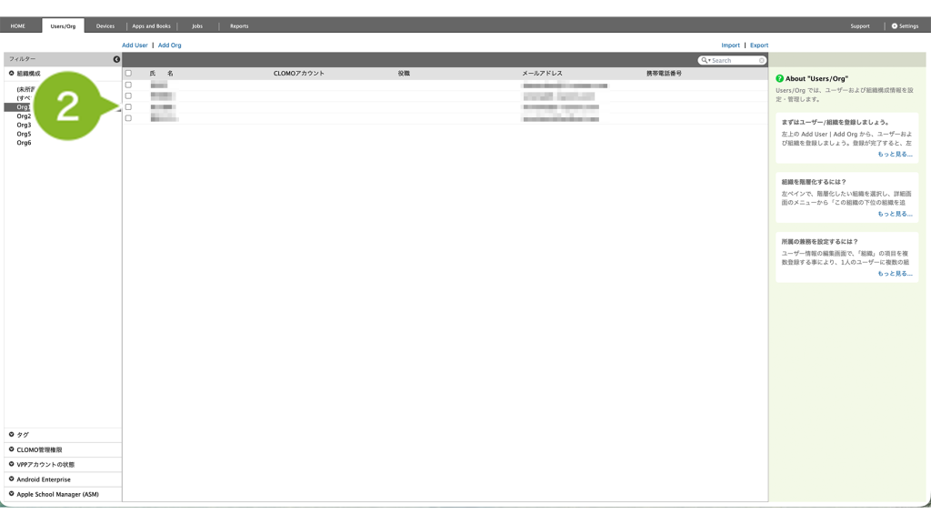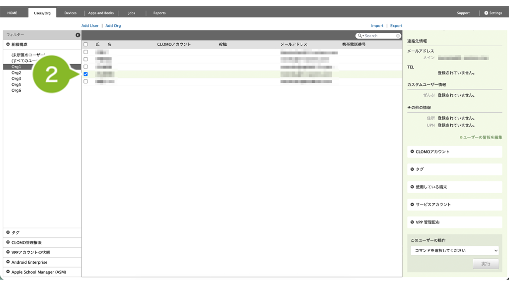 ここでは「Users/Org」画面からの実行手順をご案内します。