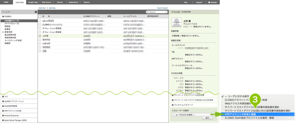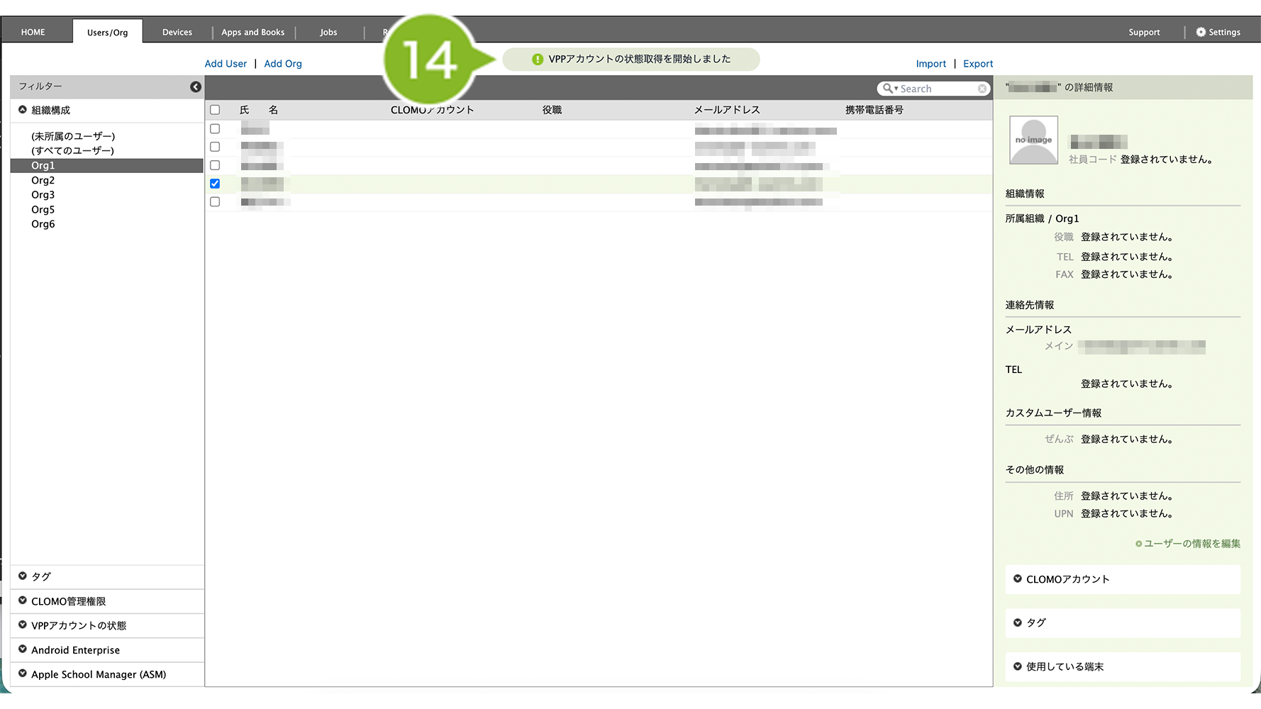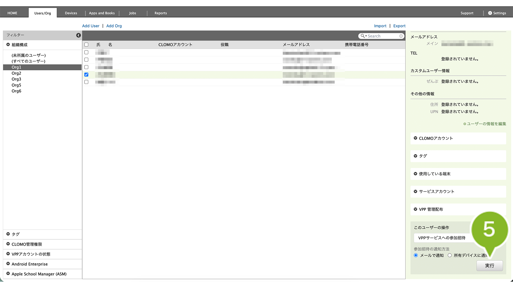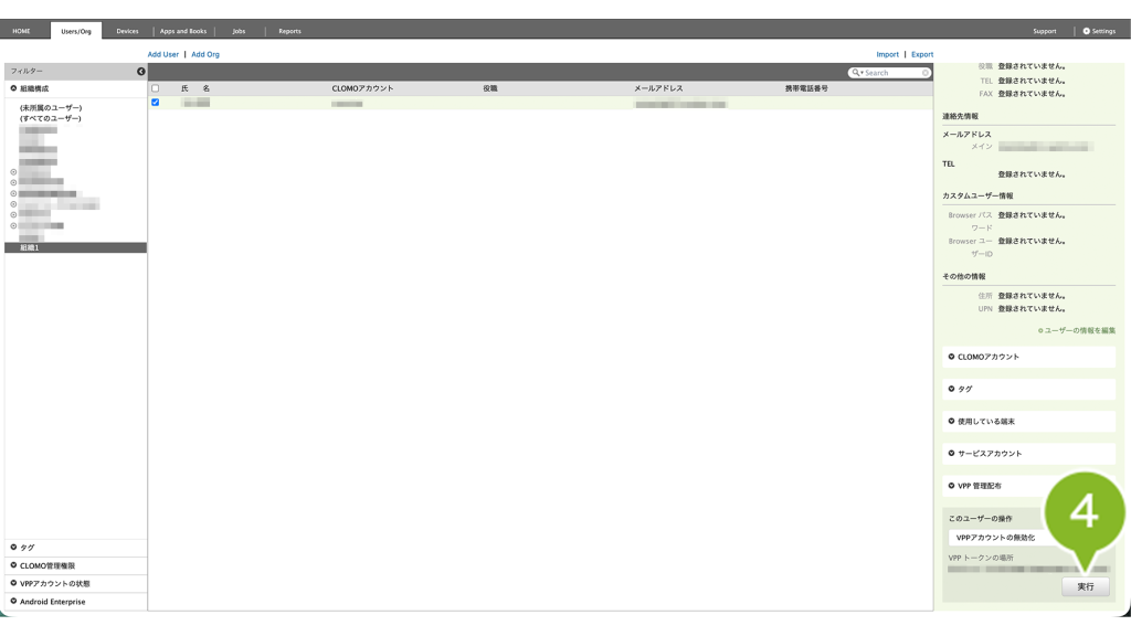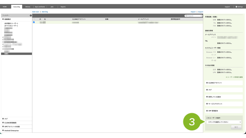 ここでは「Users/Org」画面からの実行手順をご案内します。