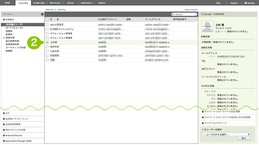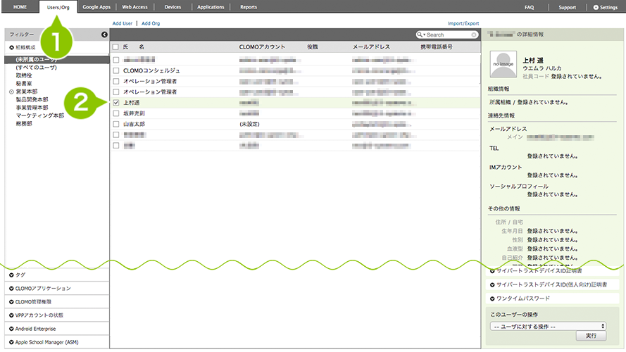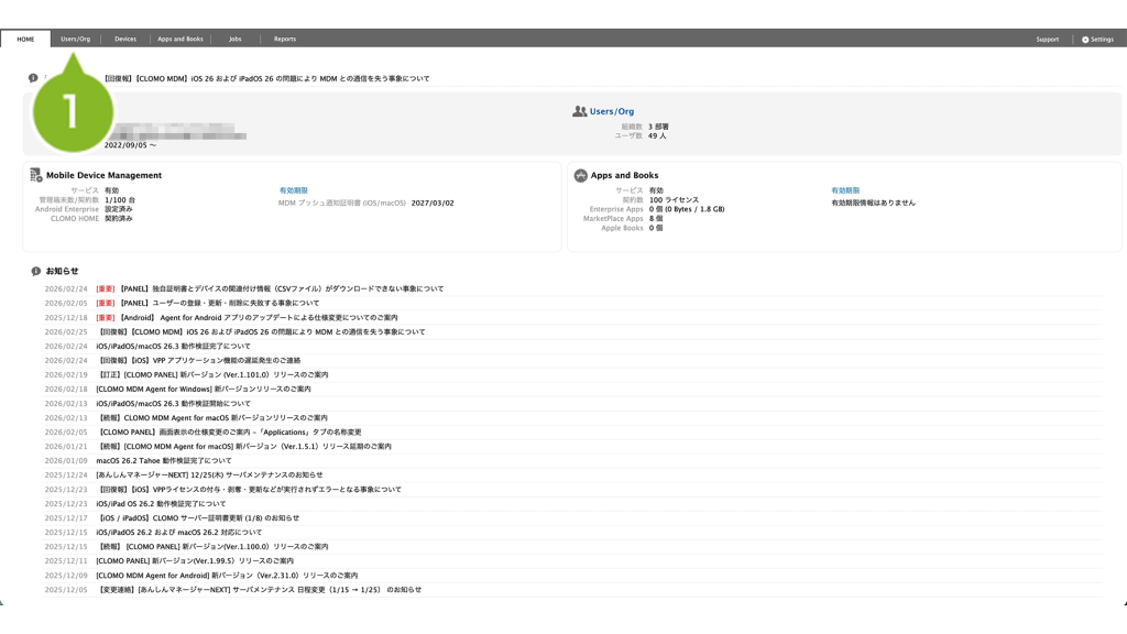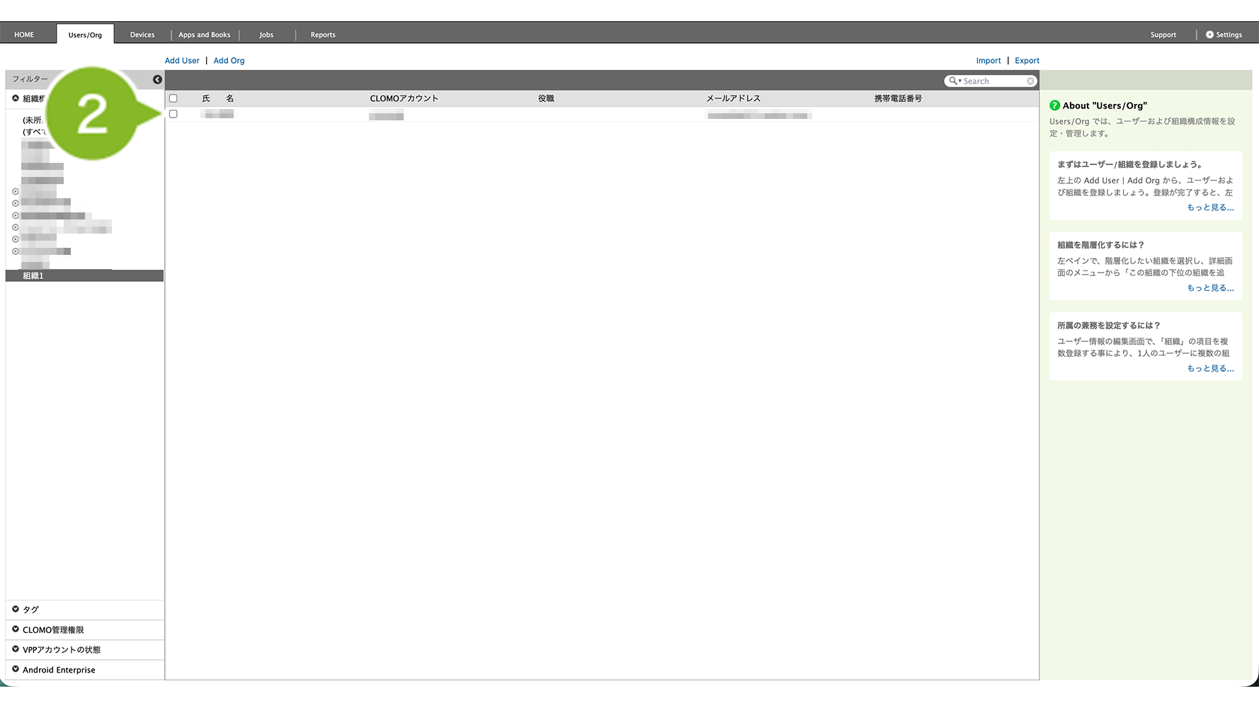 1. CLOMO PANEL にログイン後、[Users/Org]をクリックします。