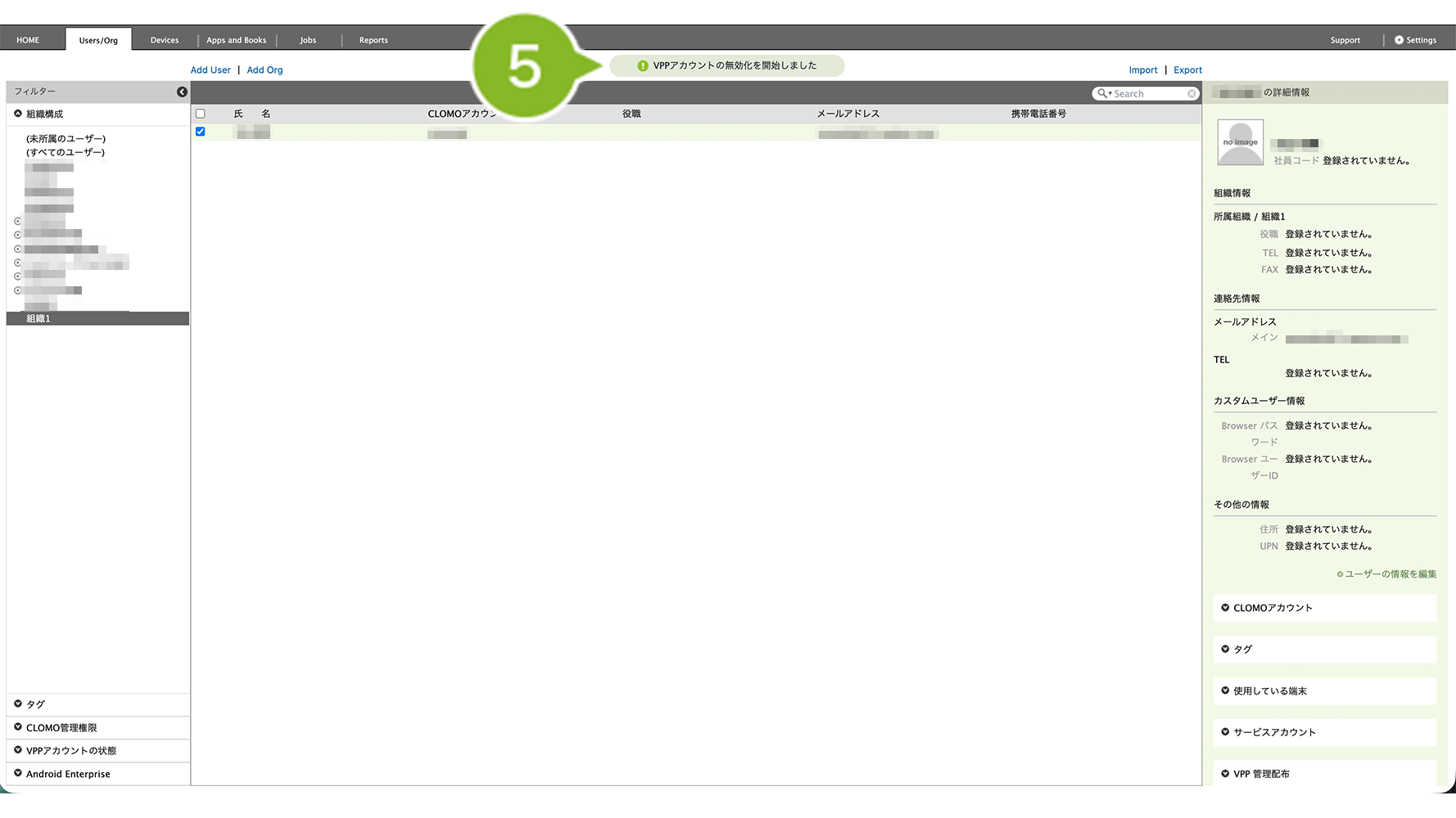 6. ユーザーを再選択して、「VPP アカウントの状態」が「無効」になれば完了です。