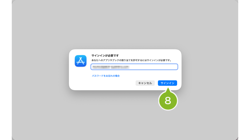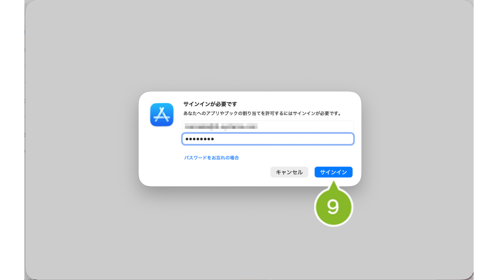 9. Apple Account のパスワードを入力して[サインイン]をクリックします。