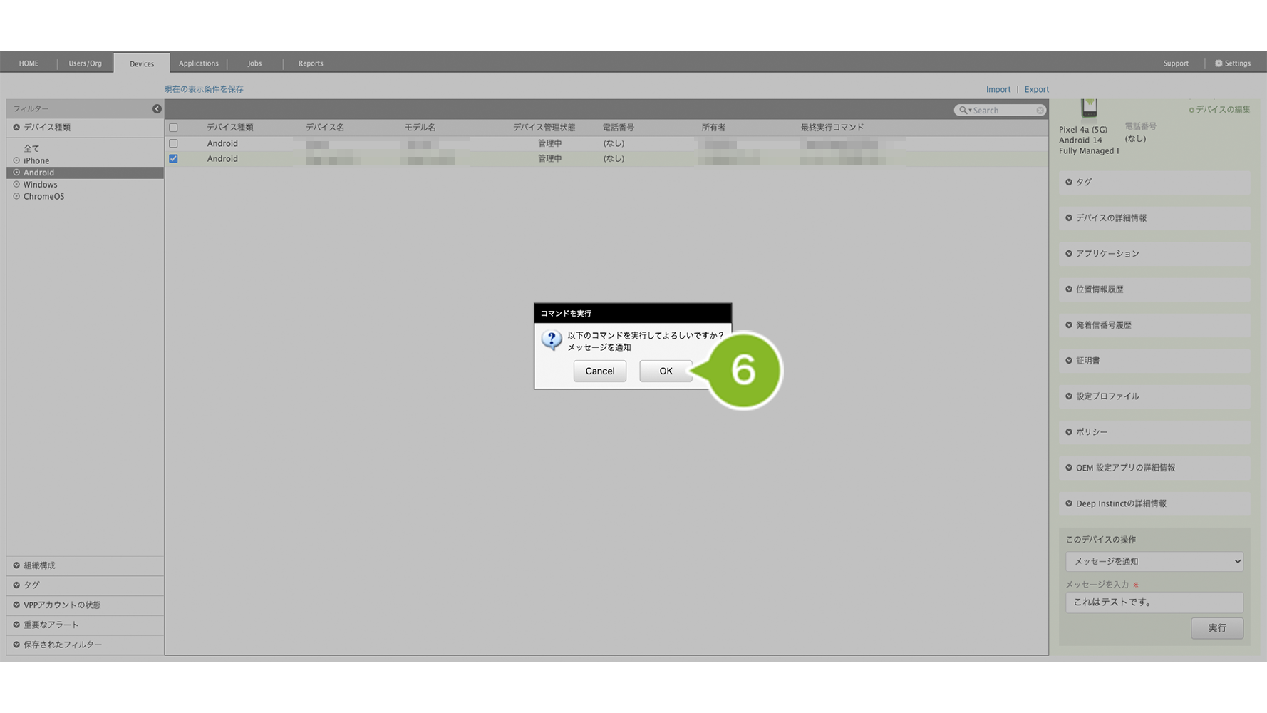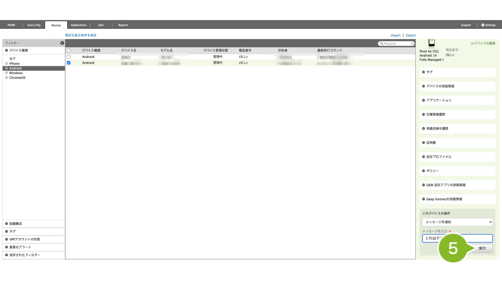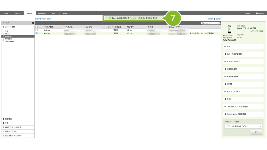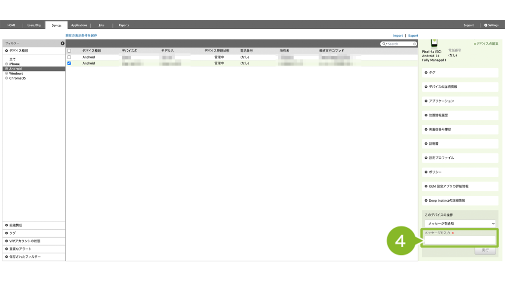 ・Android デバイスにメッセージを送信したい場合