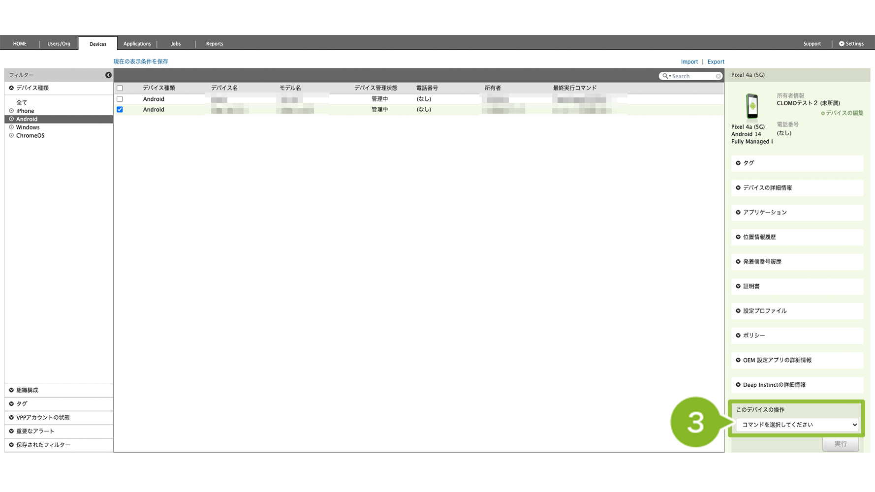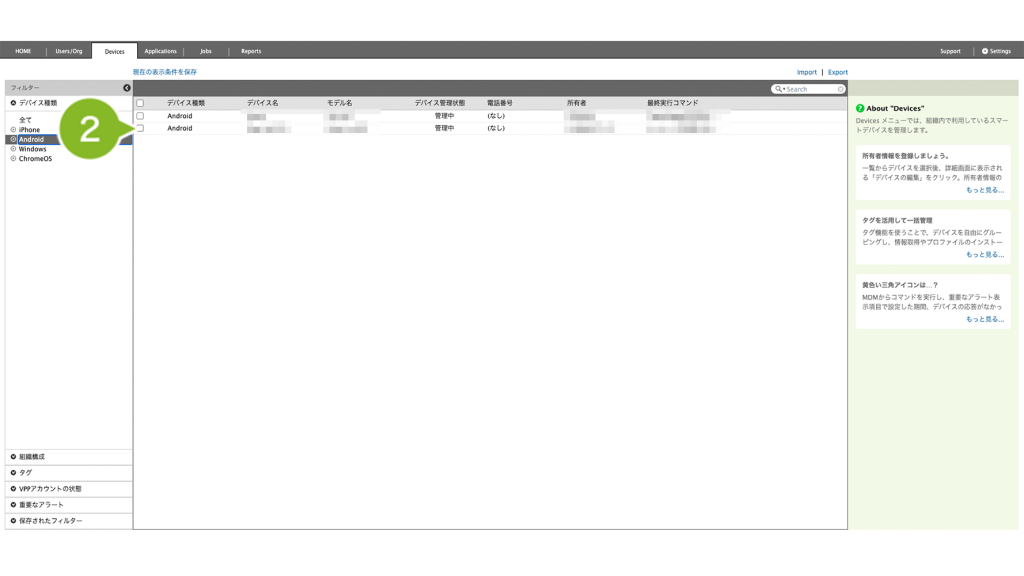 1. CLOMO PANEL にログイン後、[Devices]をクリックします。