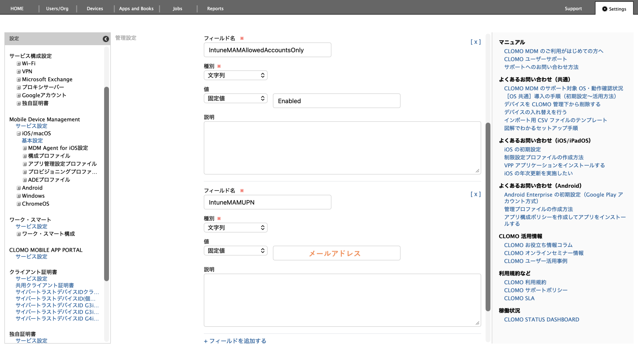 フィールド名:「IntuneMAMAllowedAccountsOnly」を入力