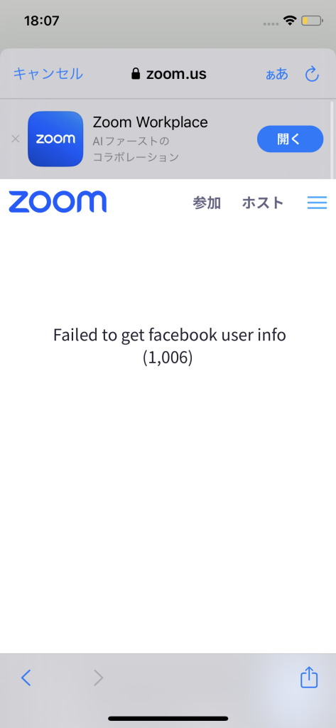 プロファイル適用後は以下のように、 Facebook でのログインが制限されます。