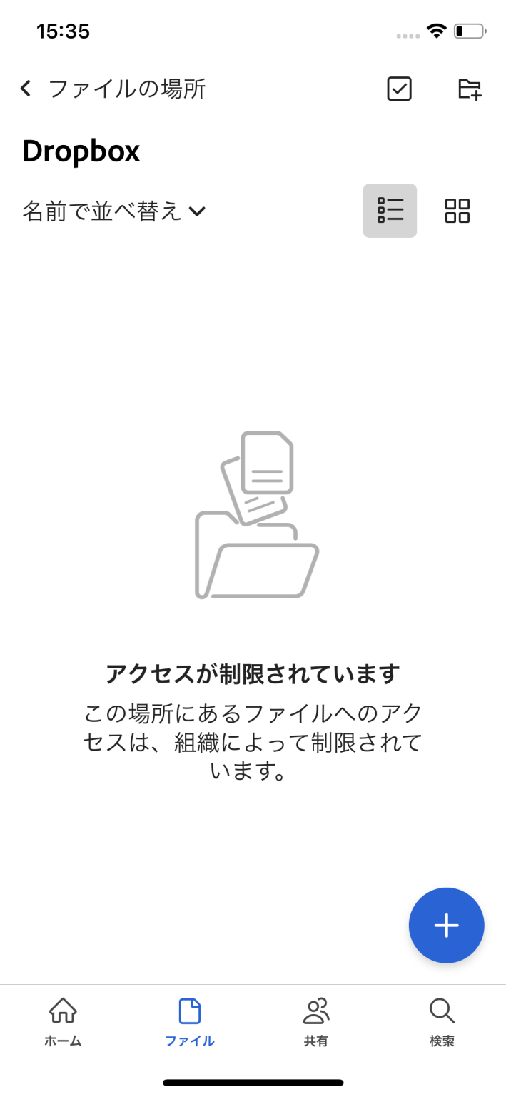 プロファイル適用後は以下の通り、Dropbox へのアクセスが制限されます。